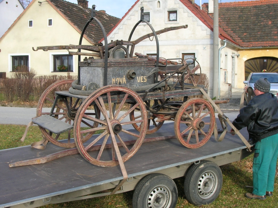 Dne 17. prosince 2011 jsme zahájili celkovou rekonstrukci naší staré vahadlové hasičské stříkačky, která byla zakoupena nově vzniklému hasičskému sboru v Nové Vsi u Českých Budějovic v roce 1898 za 119 zlatých. Výrobcem byl Rudolf Perner - zvonařství, slévárna kovů a výroba stříkaček v Českých Budějovicích. Dokumentace se, bohužel, nedochovala žádná, protože v roce 1946 byla celá původní výroba přestěhována do Německa. Tím však zatím veškeré stopy končí. Archiv firmy byl nenávratně zničen v poválečné euforii. Teď nás čeká mravenčí práce s vyhledáváním dobových fotografií a možných kontaktů přes pamětníky hasičské slávy, aby stříkačka vypadala přesně jako v době dokončení její výroby a prodeje.