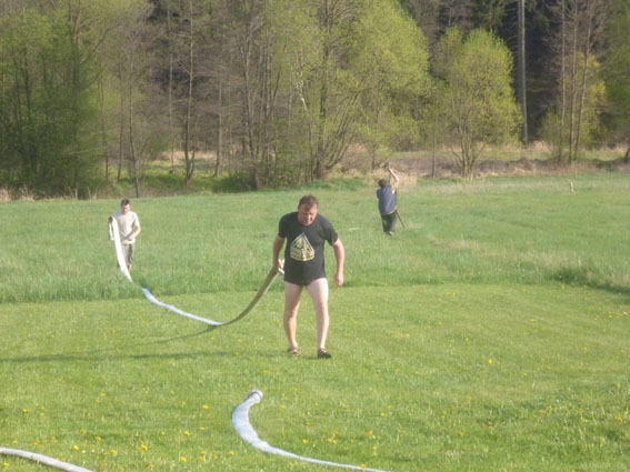 V letošním roce 2012 jsme začali poprvé v historii SDH Nová Ves cvičit požární útok na soutěže v požárním sportu. Jak jen počasí dovolilo, vyrazili jsme na louku a začali. Materiál máme částečně svůj a částečně vypůjčený od kolegů hasičů. V příšerném horku se útok opakoval ještě několikrát, nebylo vyhnutí, čekala nás Obvodová soutěž a nechtěli jsme udělat našemu SDH a obci ostudu. Klukům to šlo napoprvé velmi dobře a končili jsme s dobrým pocitem, že se na soutěži vše podaří. To nás ale ještě čekají další a další nácviky.