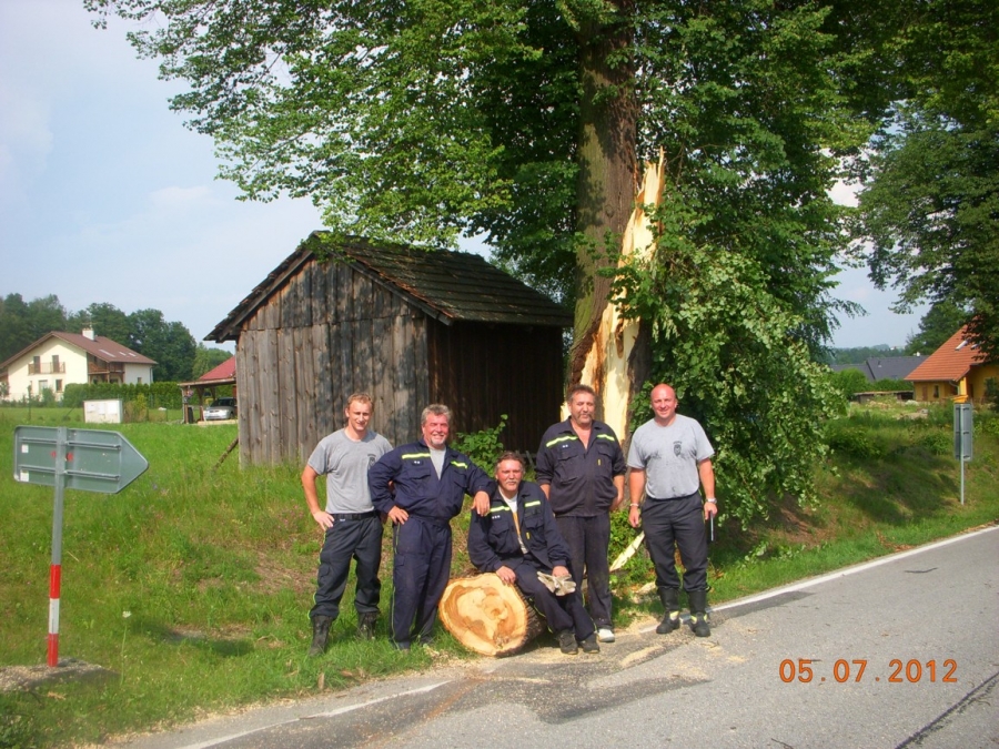 Dne 5.7.2012 v 18.20 hod. další zásah SDH Nová Ves u zcela zablokované sinice č.156 opět padlým stromem, tentokrát u odbočky do Staré Vsi.