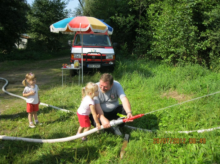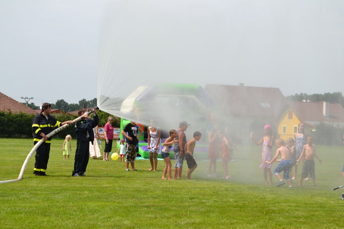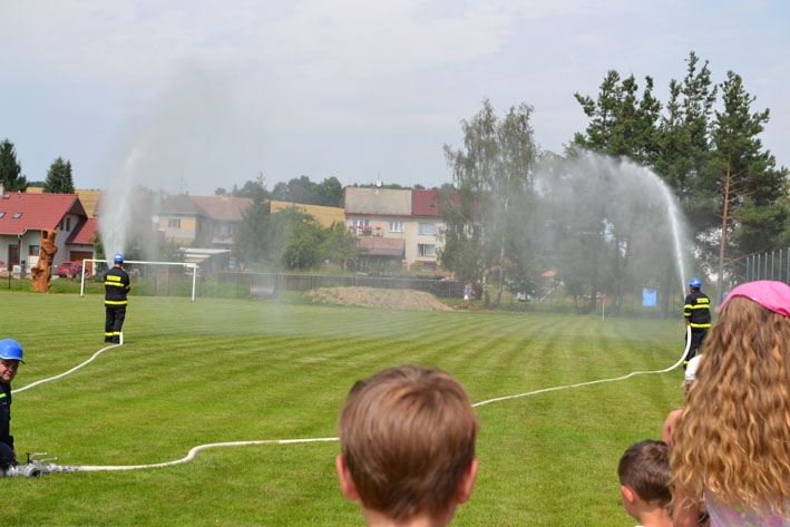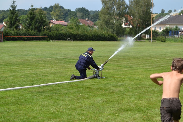 Začínali jsme opět v 09.00 hodin na stanovišti u rybníka, kde jsme připravili pro brannou hru dětí a rodičů několik úkolů - zodpovězení kontrolních otázek z protipožární tématiky a potom sražení dvou terčů pomocí proudnice C. Za odměnu byla rozdávána lízátka a bodové ohodnocení.
