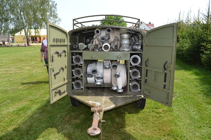 Zde jsme konečně představili naše nové vozidlo VW 5, přestavěné ze sanitního vozu na zásahové hasičské vozidlo. Po skončení ukázkového hasebního zásahu si diváci mohli prohlédnout vybavení vozu a zároveň si i prohlédnout vystavený původní starý hasičský přívěs s jeho takřka historickým vybavením.