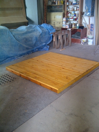 Před začínající sezonou jsme se rozhodli, že si vyrobíme vlastní základnu pro požární útok. Cena, která je uváděna v obchodech se nám zdála velmi vysoká. Použili jsme stará prkna, zkušenosti truhláře Slávka a za sobotní dopoledne jsme ji bez problému zmákli. Stihli jsme si i pohrát se Slávkovými zvířaty. Základna je dvoudílná z důvodu snazší manipulace a nižší váhy.